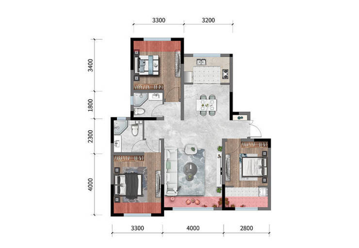 A户型:95㎡|三室两厅两卫