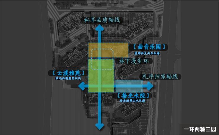 二进:以“一环两轴”打造威仪有序的迎宾景观会客厅。