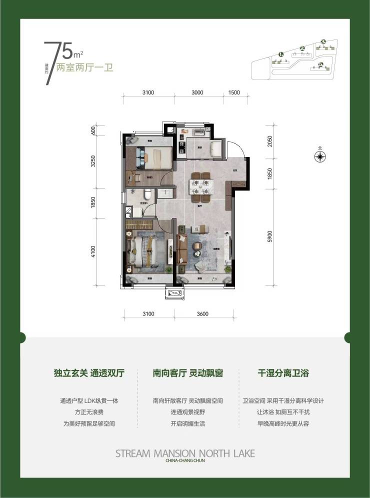 面积75两室3栋100日平三室 均价8900左右 预计26年3月交房