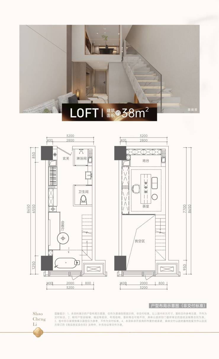 建面约38㎡(SOHO/LOFT,主力户型)。