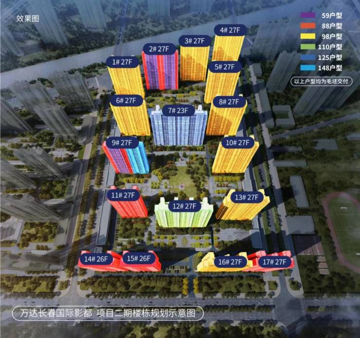 2、【产品简介】:一期已售罄,二期住宅主力面积88-98-148㎡,精致两居到阔绰四室,毛坯交付