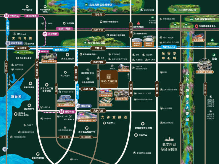 免责声明:开发商名称:【武汉香江里房地产开发有限公司】管理商:【西南绿城房地产开发有限公司】。本广告为商品房销售广告宣传资料,不作为要约或承诺,所有图片、文字及数据仅为参考,买卖双方权利义务以商品房买卖合同及补充约定为准。以上图片源于网络,如有侵权请联系删除。本项目推广名:绿城·光谷桂府,本项目备案名:居住、社会福利项目(赛达锦城)一期,制作时间:2024年9月。