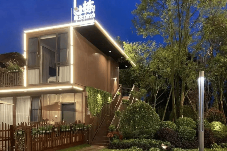 海子山的集装箱酒店以海拔和5米文创命名,比较新颖。集装箱酒店这一形式是源自于英国,具有工期短、成本低,回收再利用的优势,且与自然的融合度较高,能给入住人群带来不一样的体验。