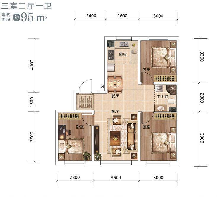 『经典再升级,布局合理、面积适中,客厅开间3.9米』