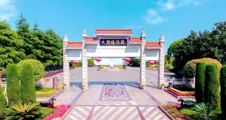 成都大朗陵园是1992 年经省市民政部门批准的永久性园林式文化陵园,由杨成武将军亲笔题写园名,诗人流沙河题誉 “西南第一陵”。坐落于温江区金马河河畔,占地约1000 余亩,总投资超10 亿元,是成都市规模最大的园林式文化陵园之一。园区背倚金马河回水湾,形成 “水聚财” 格局,核心景观 “大朗桥” 以三层水流设计暗合 “财中财” 理念。突破单一墓葬模式,融古老墓葬与新潮植树葬、草坪葬、艺术葬于一园,同时将游览观光引入殡葬文化,园内曲径通幽,馨香满园,极尽江南名园之秀。