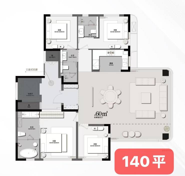 【越级户型】负公摊+全景舱户型+户户独立电梯厅,超四代住宅