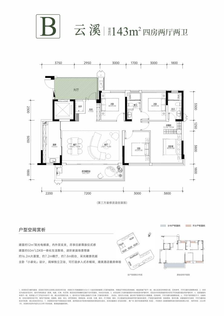 B户型 |143㎡四房两厅两卫亮点: