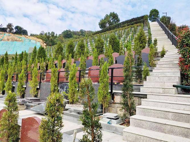 这里有连绵起伏的群山,松树和柏树交错生长,清幽的泉水微风拂面,鸟语花香。小桥上流淌着潺潺流水,宁静和谐。不同形式的生态葬,包括树葬、草坪葬、花坛葬、室内葬、壁葬等,与艺术墓地的景观完美融合。