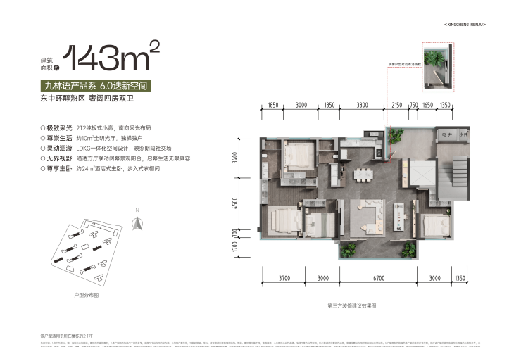 九林语“林光生活美学”的全新演绎,特选真石漆搭配金属铝板,演绎近代摩登风范,争耀时代的双层LOW-E沐光玻璃,尽展天际线律之美。