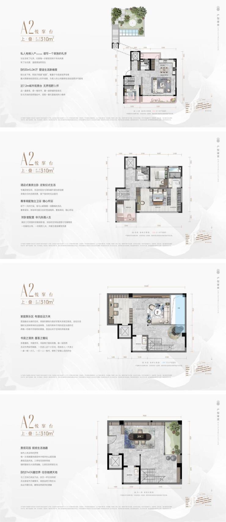 城市公园墅院叠拼户型图亮相:面积范围大致在 310㎡至 320㎡之间。该叠拼采用 4F 上下真叠墅设计,每户都精心配备了花园。值得一提的是,它有独具匠心的独立入户设计,业主归家时,能尽情享受那份专属仪式感。每一层都如同一个独立小天地,每一处庭院都藏着独特景致。城市公园墅巧妙融合显赫尊贵与静谧隐逸,将这些美好特质凝聚在这珍贵的居住空间里。具体而言,下叠户型还附带面积为 70 - 90 平的花园,为业主生活增添更多自然与惬意。