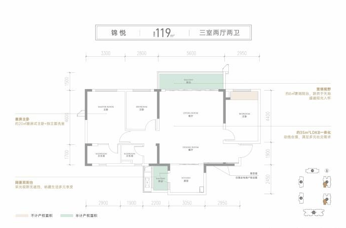 阔景双阳台,视野无遮挡约35㎡LDKB一体化,满足多元社交需求约5.6m观景阳台