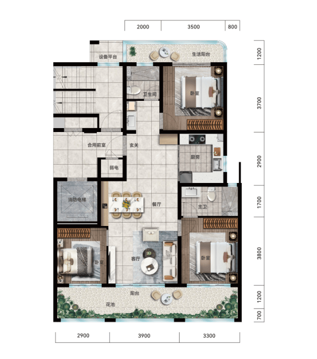 南北双阳台,超高得房率,从容空间利用,奢适生活体验