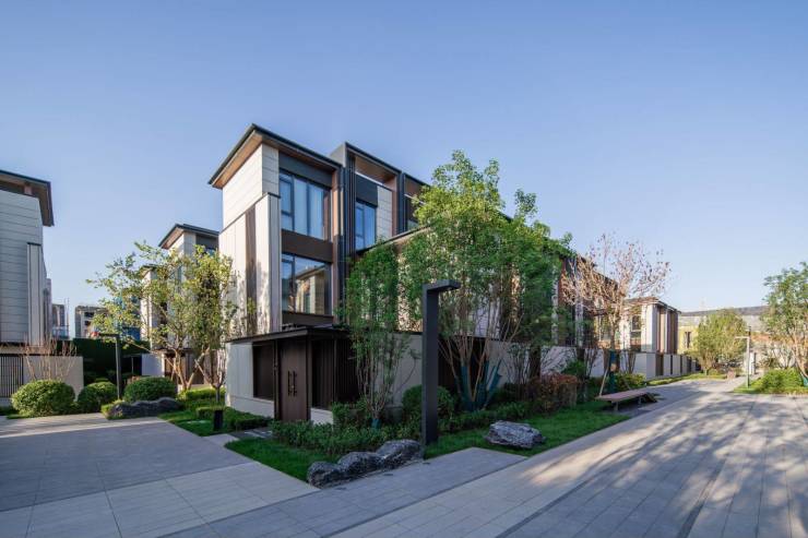 园林景观:本次银川建发地产有限公司携手陆玛文旅景观设计股份有限公司基于场地自身的属性,引绿入院,遵循“林山艺境 幽然森居”的设计理念。