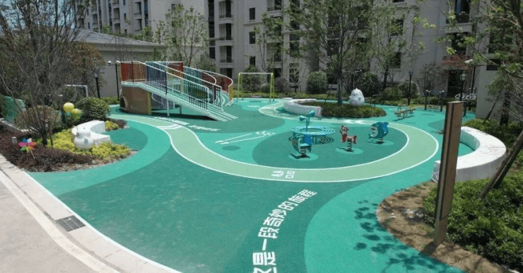 社区配套:容积率仅1.8,绿化率37%,车位配比1:1.6,采用“一轴四园”园林景观布局