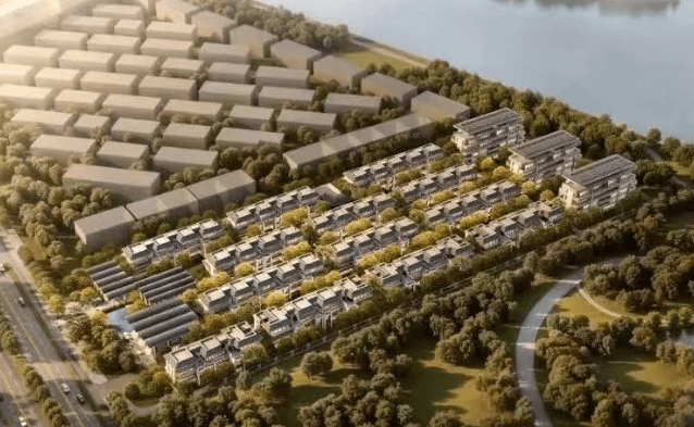拟建16幢住宅,其中13幢为3F联排;3幢5F叠加