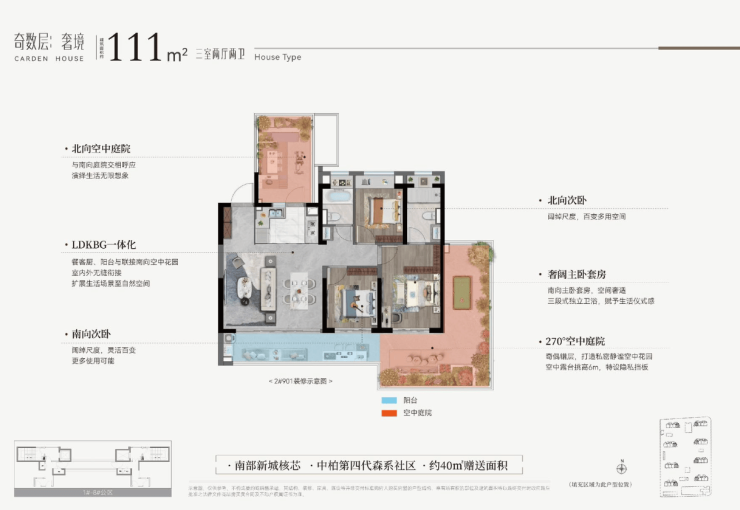 奇数层:南向或270°转角庭院,6米挑高,可改造成: