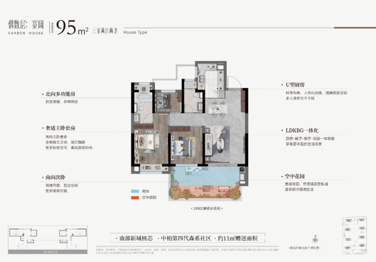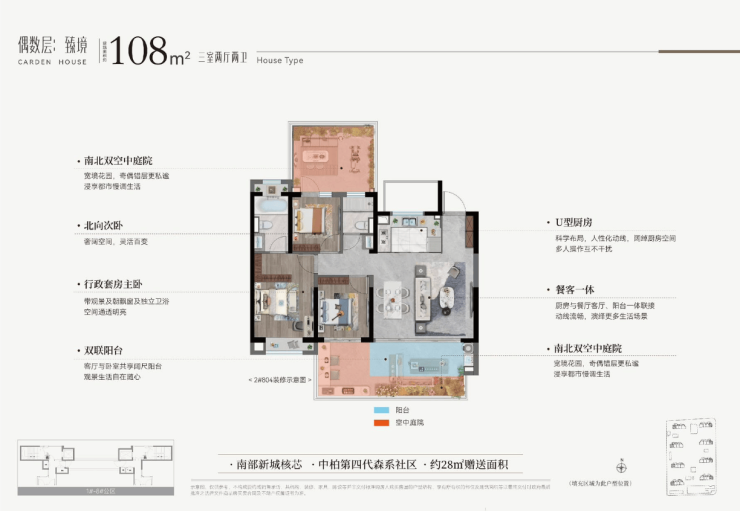 偶数层:南北双庭院,北院收纳杂物,南院观景休闲