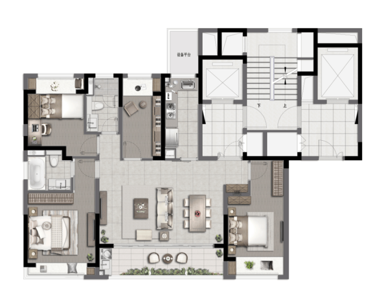 项目当前主力在售128-132㎡户型,充分考虑了居住的舒适性与功能性,以南向四开间、套房式主卧等空间亮点,收获现场无数赞誉。项目臻选知名品牌,搭载新风、地暖、中央空调三件套,从细节到整体,关怀生活每一处。