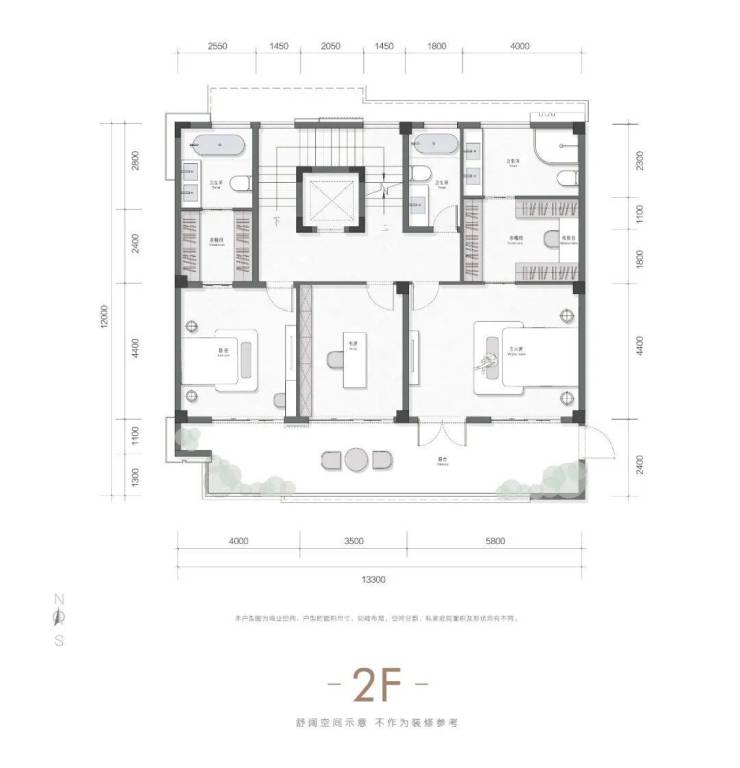 标准独栋510-580㎡60㎡地上4层+顶楼露台550-650万元10室5厅3卫4阳台布局露台
