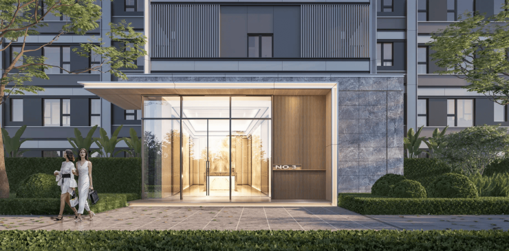 建筑采用现代主义风格,铝板与玻璃幕墙交织出通透立面,搭配270°全景落地窗设计,将太湖波光引入室内。特别值得一提的是,项目独创"一梯一户"私密空间,每户均配备独立前室与双玄关系统,实现归家动线的尊崇仪式感。