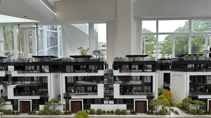 开发商苏州信达置业有限公司打造的这个项目, 产品为40年产权的商业独栋别墅,面积在510-580㎡之间,清一色独栋设计。以约560㎡户型为例,地上4层不带地下室,带60㎡左右庭院,顶楼带露台,露台面积约128㎡