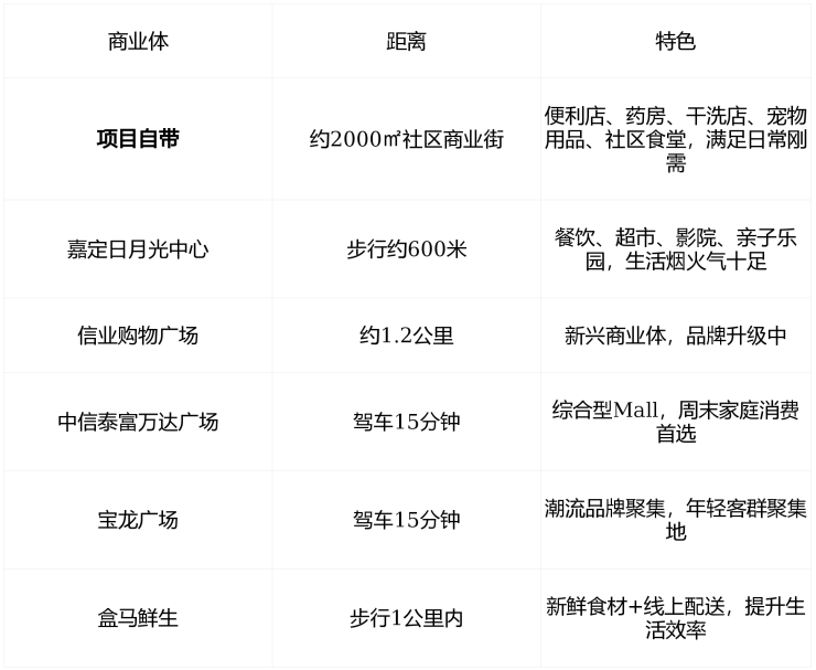🛍️ 商业配套:1公里内生活闭环,3公里享城市级消费