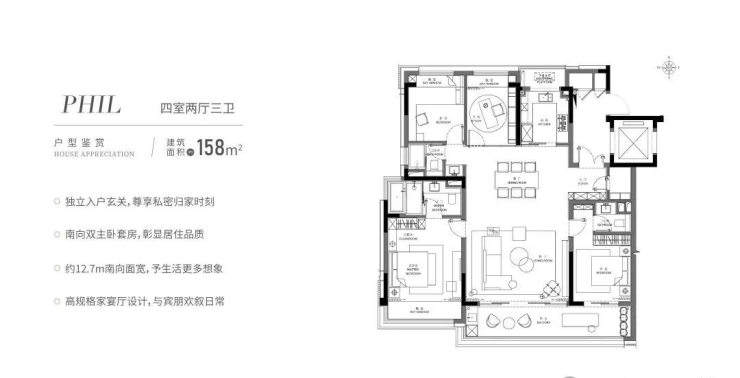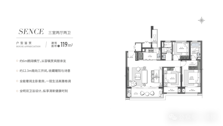 项目以现代国际风格为基调,重新定义木渎人居标准——119-188㎡人文大宅采用LDK一体化客餐厅设计,配备超大面宽景观窗与洄游动线;主卧套房融入多功能空间设计,搭配静谧书房与拓展型阳台,在彰显尊贵气质的同时更兼顾实用性与舒适度。