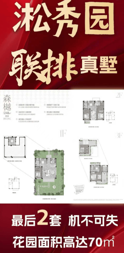 联排别墅:约248㎡,五室两厅,私密性强,适合大家庭