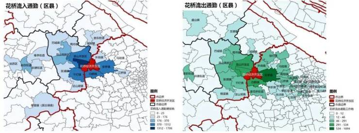 根据疫情期间工作人员在花桥每个小区逐一统计,现有在花桥“沪昆两地”通勤上班的人有6万多人,下面是花桥通勤上海的图解。