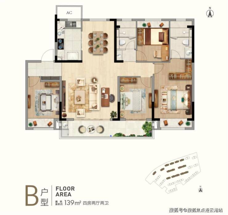 面积户型:125m²、139m²都是四房两卫户型。
