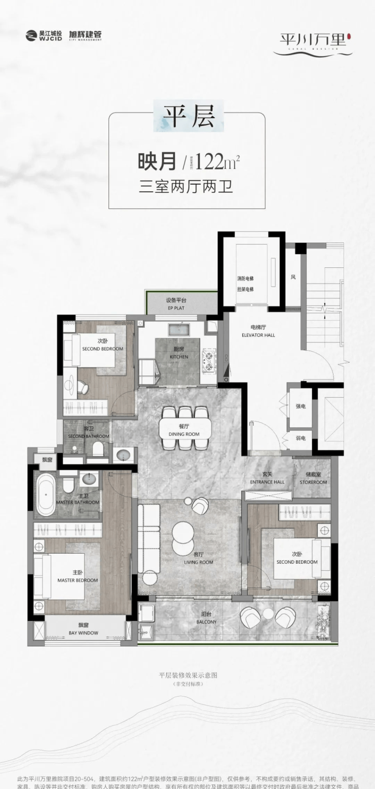 小高层:122㎡(三房)、144㎡(四房)