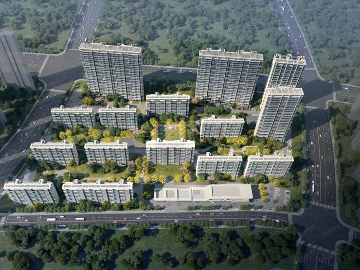规模:占地面积约9.28万㎡,建筑面积26.7万㎡,容积率2.1-2.3,绿化率30%-31.3%
