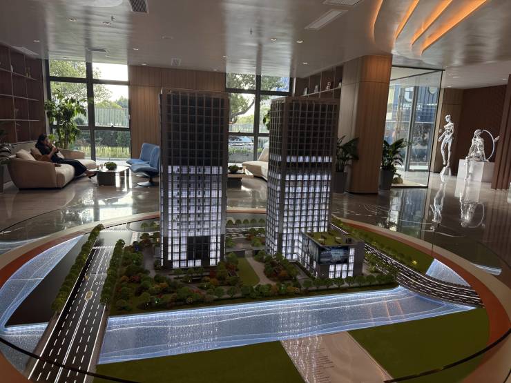 采用“超现代建筑风格”,六面多彩幕墙搭配浅色LOW-E中空玻璃与金属铝板,外观通透、光洁,极具未来感