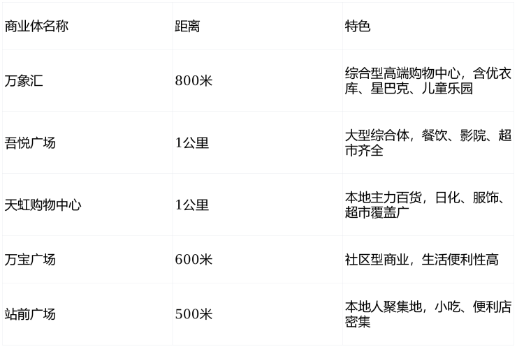 1公里半径内覆盖 30余个商业体 ,满足从日常采买、周末聚餐到高端消费的全场景需求。