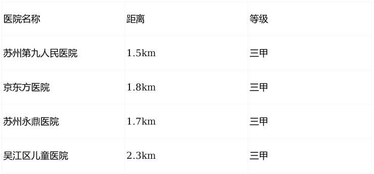 3公里内拥有 4家三甲医院 ,覆盖妇产、儿科、急诊、康复全科体系,家庭医疗保障极强。