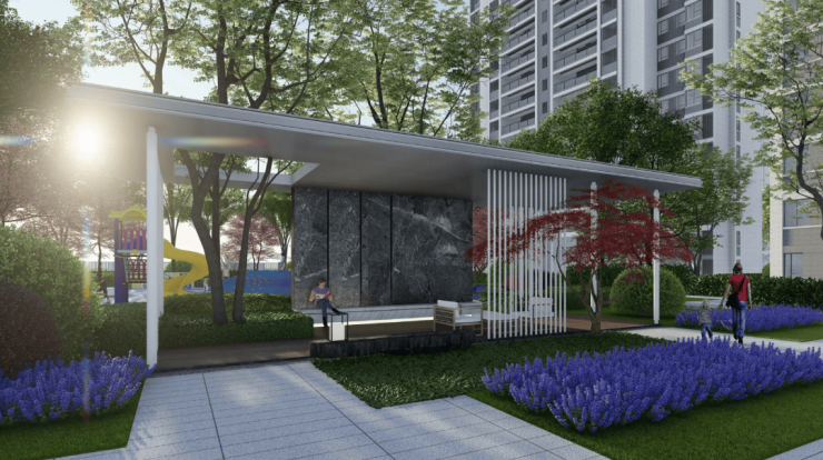 园林景观:打造“一轴一环五里”全生命周期生活场域,礼序景观轴串联五大主题活动区,乔灌草立体搭配,四季常绿植物占比超80%。