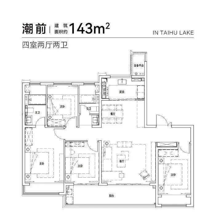 198㎡户型南向约18.5米采光面+9米瞰湖阳台