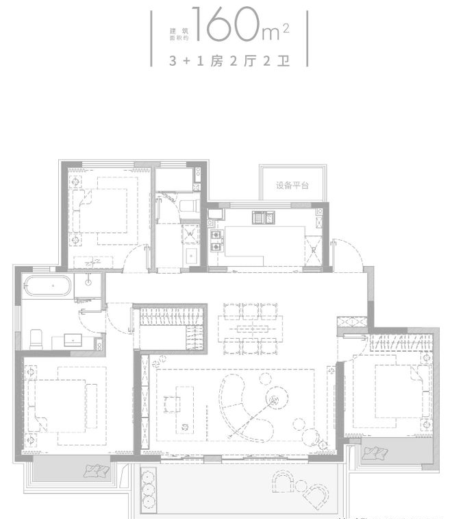 160㎡:四居室,满足多代家庭需求