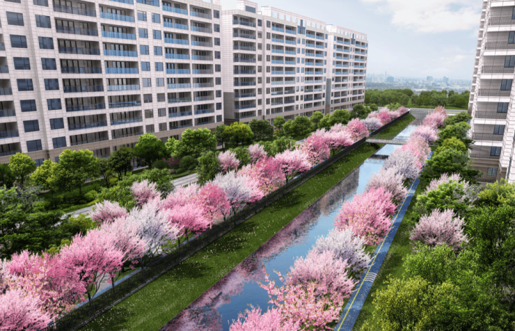容积率仅2.13,绿化率37%,社区内规划7大主题花园、600米樱花大道及24节气健康跑道,紧邻虎丘湿地公园和元和塘景观带,生态环境优越。