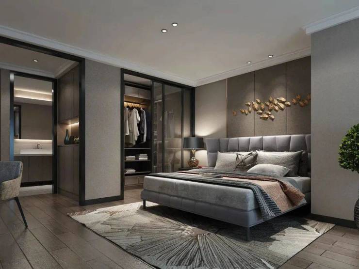 在私谧的主卧空间里,宽敞明亮、功能完备,它像是主人心灵的避风港,在日复一日的忙碌与疲惫后,为主人提供一处心灵、放松身心的神圣领地。主卧的独立卫浴设计,更是巧妙地解决了早晨洗漱的繁忙时段,让生活的节奏变得更加从容不迫。