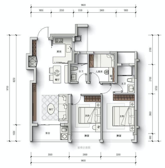 棠前明月是的,户型正在越做越大。所以当看到下面这个建面约112方的四房时,内心是有一点感动的:又有楼盘认真抠起了户型。