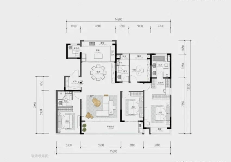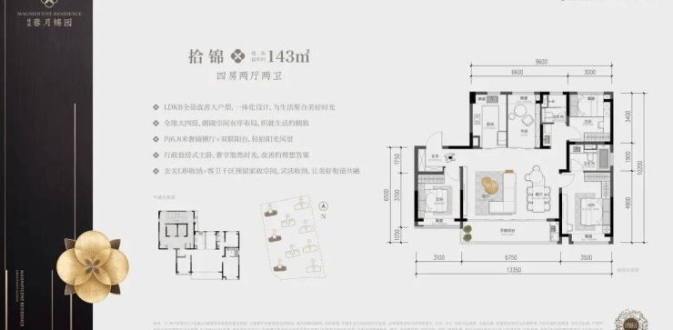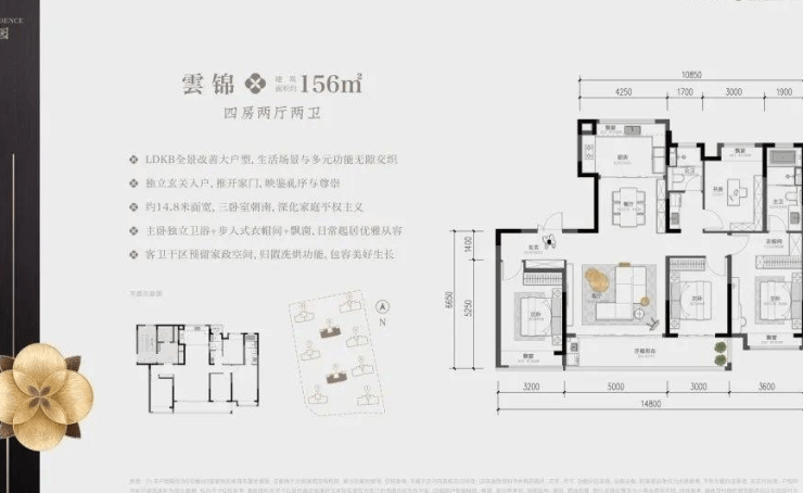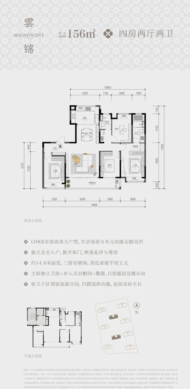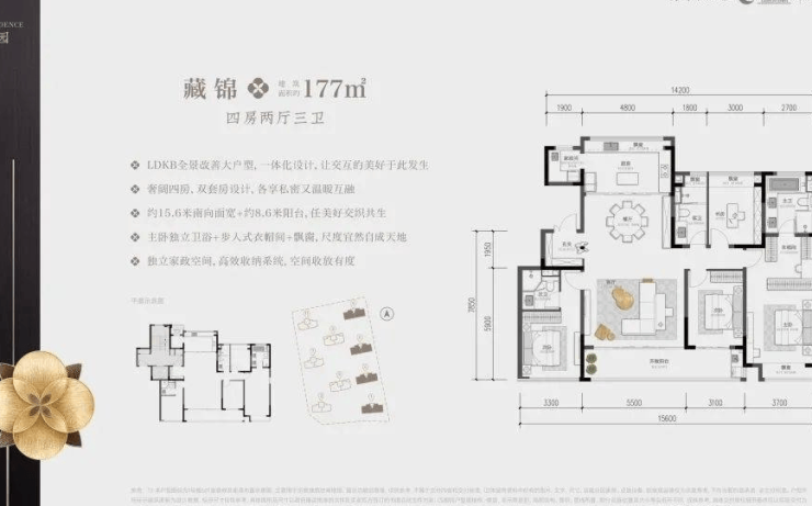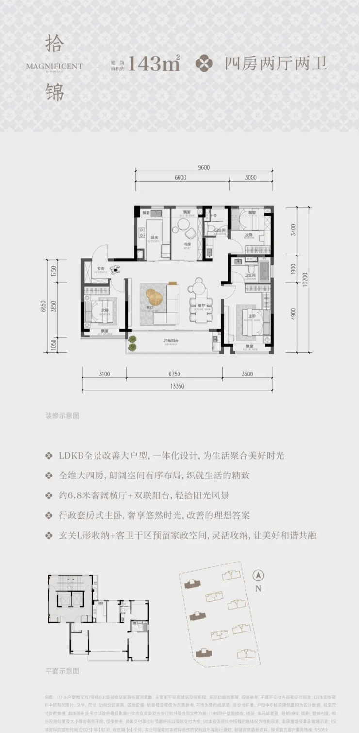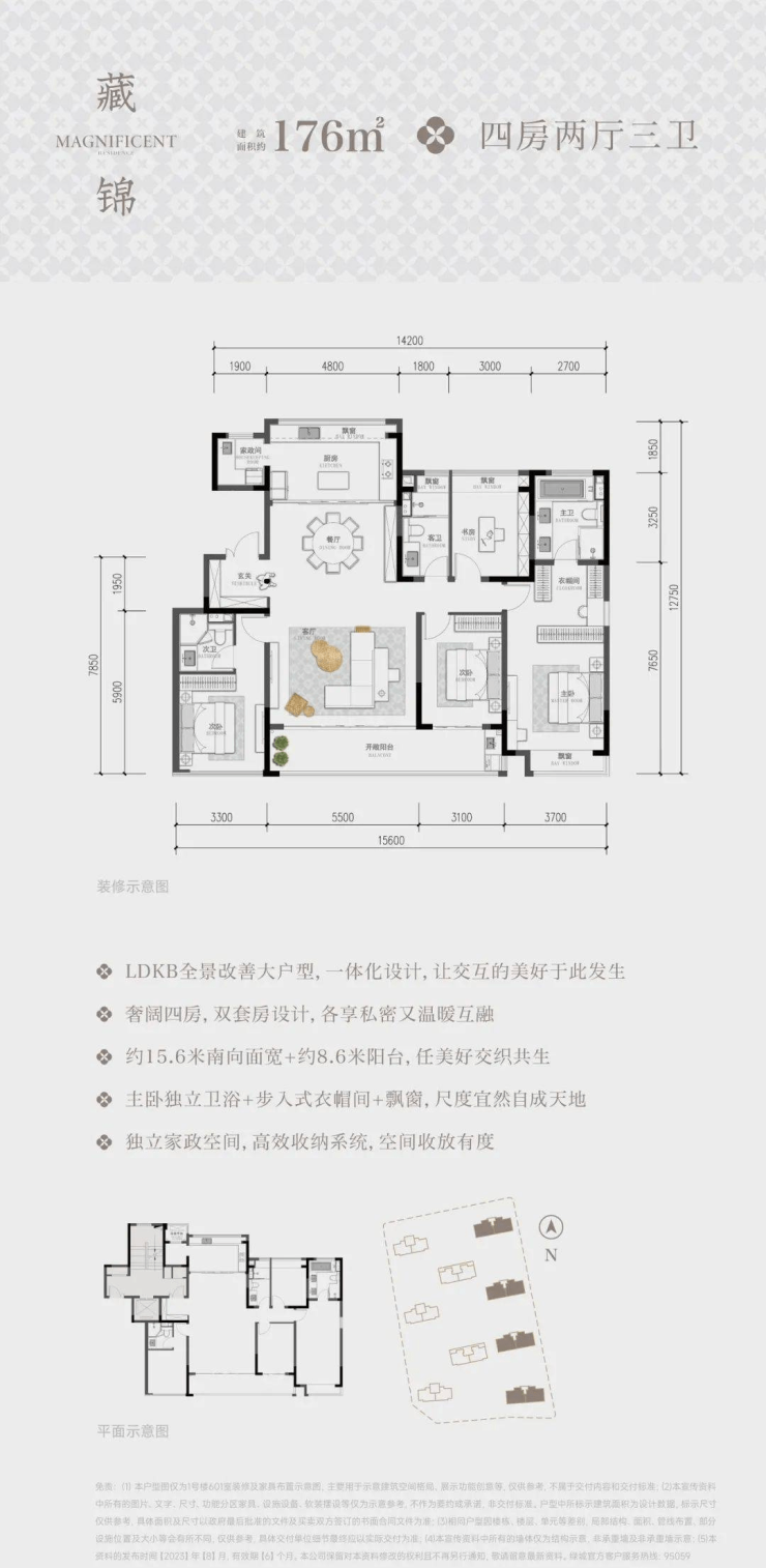 面积:约125㎡4房2厅2卫、约143㎡4房2厅2卫、约180㎡3+1房2厅3卫