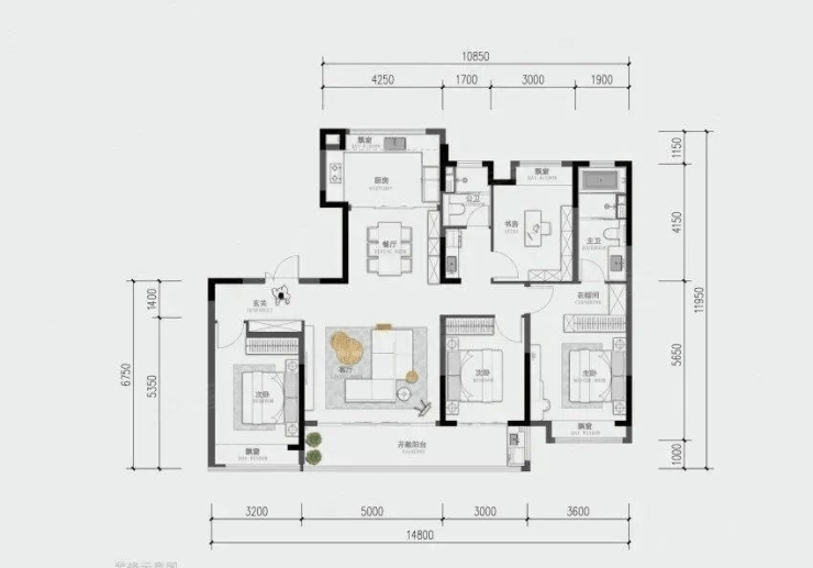 176平四房两厅三卫,户型位于东边的洋房