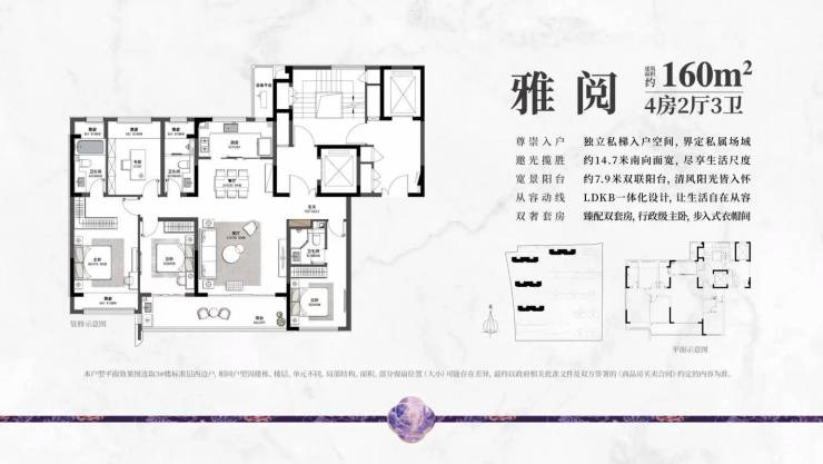 160㎡四居室(小高层):4室2厅3卫,得房率85%,总价400-420万