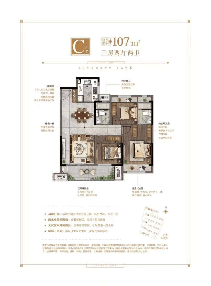 主力户型:89㎡三室一卫(总价约110.5万起)、96-107㎡三室两卫(总价120-134万)、120㎡四室两卫(总价约172.5万)