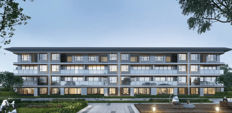 建筑外立面采用铝板、真石漆与玻璃栏杆搭配,现代简约中透着宋式典雅质感。