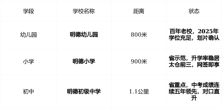 ✅ 政策明确 : 购房即锁定明德学区 , 非“多校划片”“积分摇号”区 , 太仓少有的“纯正学区房”社区 ,教育确定性为最大核心优势。