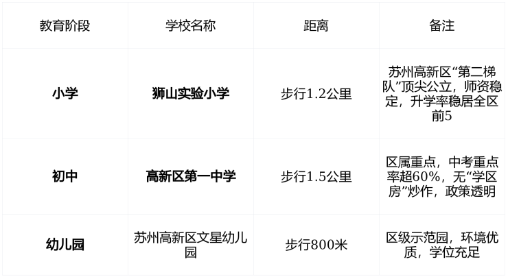 学区政策 :2025年高新区教育局已明确划片, “五年一学位” ,入学无争议,适合长期定居家庭。