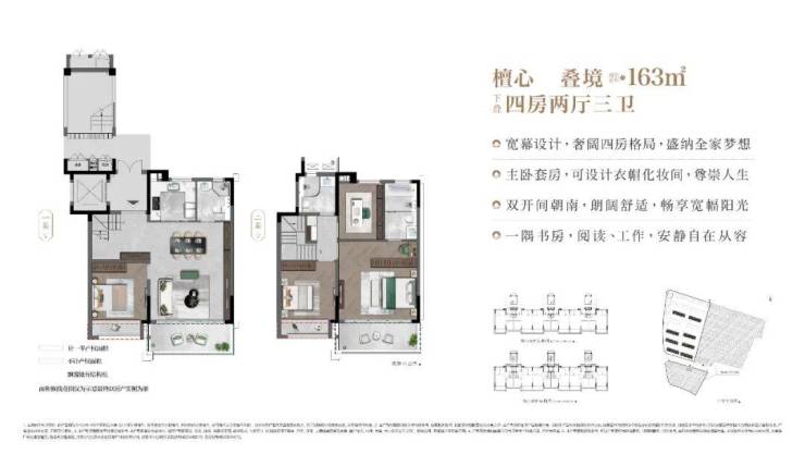 125㎡:4室2厅2卫,双套房设计,独立家政空间