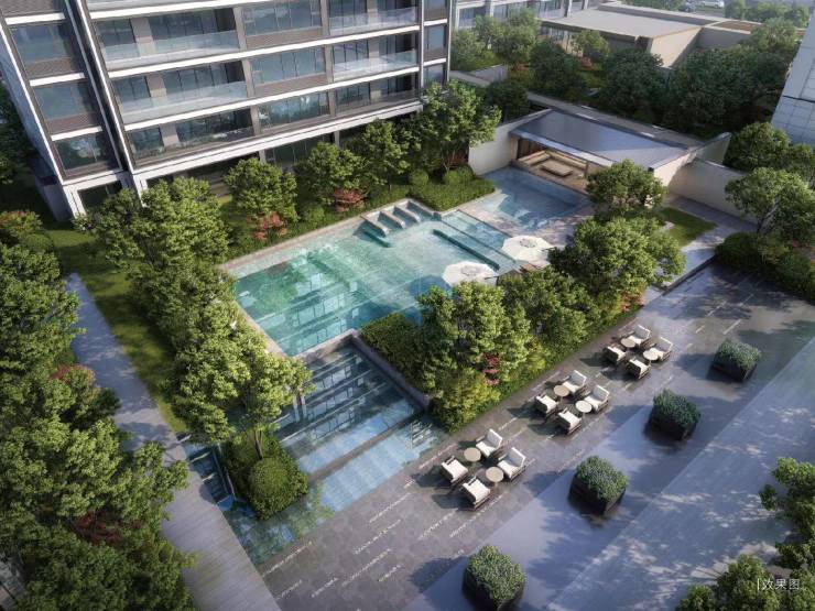 下沉式会所、中央戏水池、儿童活动区